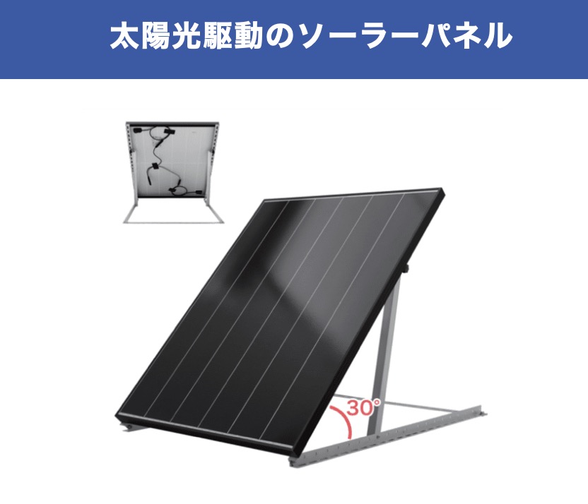 本商品は内蔵バッテリーやソーラー給電システムにより、電源環境がない場所でも自立して稼働し、