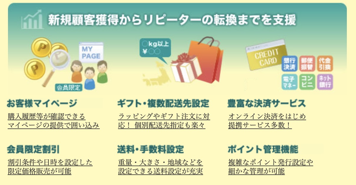 また、機能面でもネットショップ運営に必要な基本機能がしっかりと揃っているため、個人ショップから中小規模のECサイトまで幅広く活用されています。