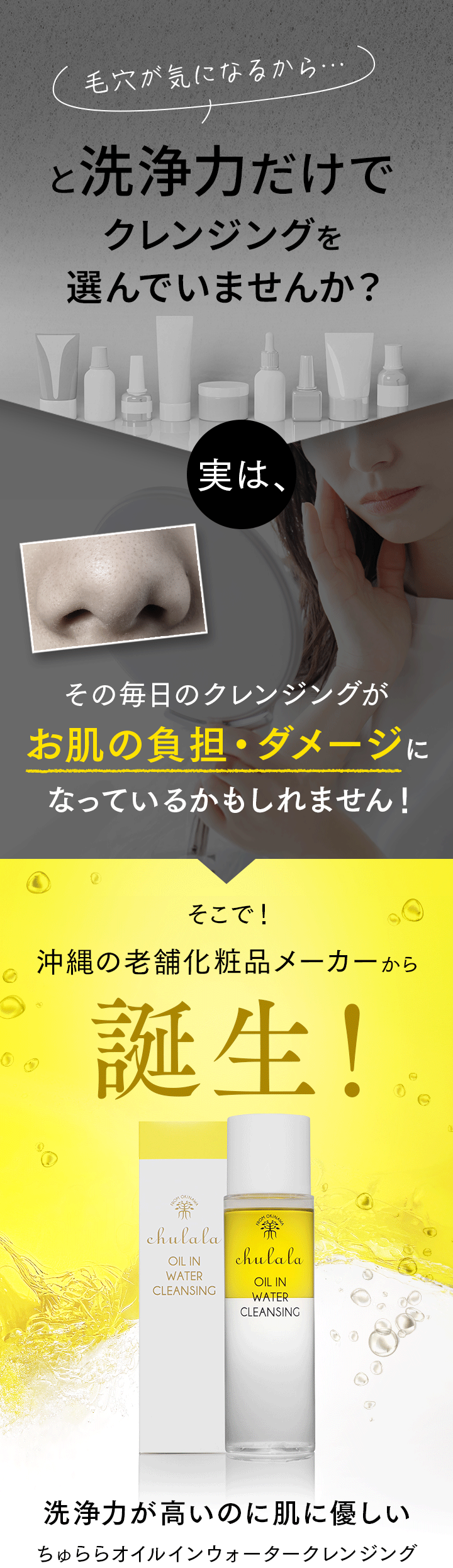 シリーズ累計120万本突破!! 自然派スキンケア!【ちゅらら オイルインウォータークレンジング】